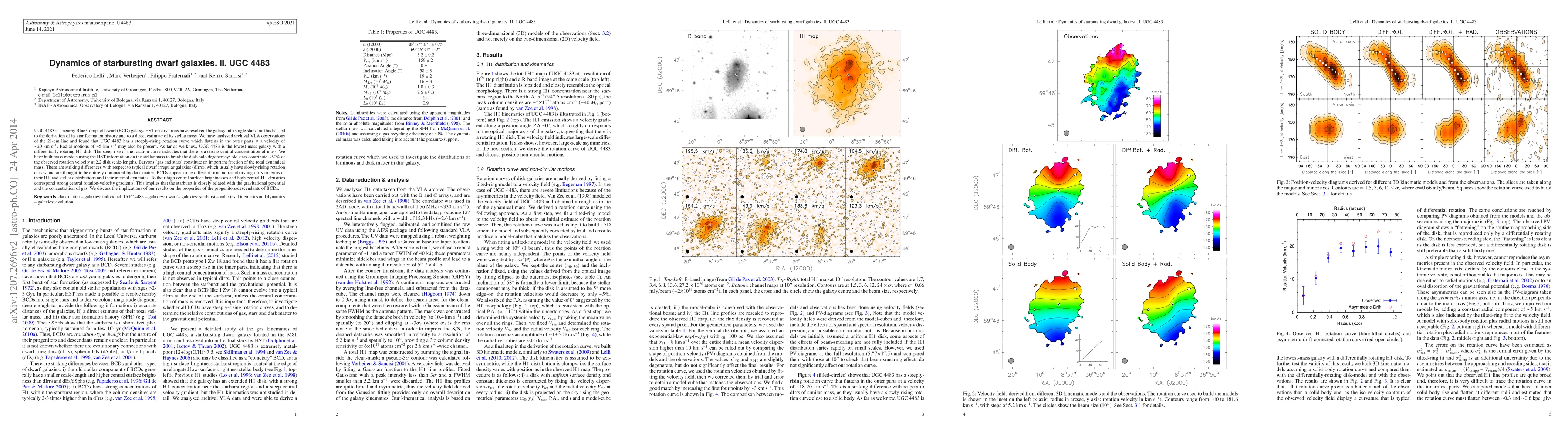UGC 4483 is a nearby Blue Compact Dwarf (BCD) galaxy. HST observations have resolved the galaxy into single stars and this has led to the derivation of its star formation history and to a direct estimate of its stellar mass. We have analysed archival VLA observations of the 21 cm line and found that UGC 4483 has a steeply-rising rotation curve which flattens in the outer parts at a velocity of ~20 km/s. Radial motions of ~5 km/s may also be present. As far as we know, UGC 4483 is the lowest-mass galaxy with a differentially rotating HI disk. The steep rise of the rotation curve indicates that there is a strong central concentration of mass. We have built mass models using the HST information on the stellar mass to break the disk-halo degeneracy: old stars contribute ~50$%$ of the observed rotation velocity at 2.2 disk scale-lengths. Baryons (gas and stars) constitute an important fraction of the total dynamical mass. These are striking differences with respect to typical dwarf irregular galaxies (dIrrs), which usually have slowly-rising rotation curves and are thought to be entirely dominated by dark matter. BCDs appear to be different from non-starbursting dIrrs in terms of their HI and stellar distributions and their internal dynamics. To their high central surface brightnesses and high central HI densities correspond strong central rotation-velocity gradients. This implies that the starburst is closely related with the gravitational potential and the concentration of gas. We discuss the implications of our results on the properties of the progenitors/descendants of BCDs.