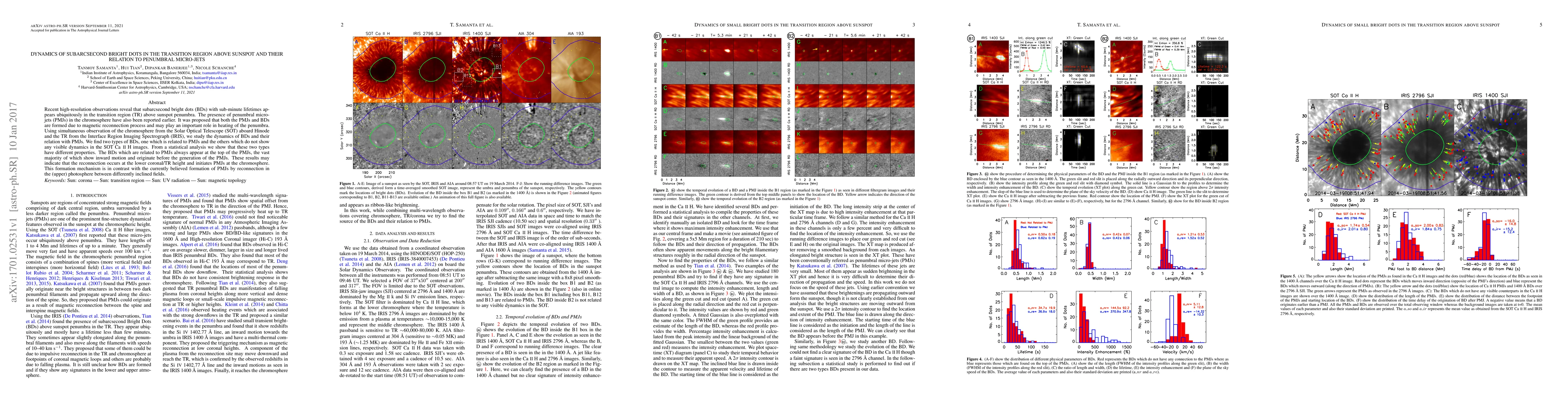 This study investigates the dynamics of subarcsecond bright dots (BDs) in the transition region above sunspot penumbra and their relation to penumbral micro-jets (PMJs). Observations reveal two types of BDs, with only one type linked to PMJs, showing inward motion and originating before the PMJs, suggesting reconnection at lower coronal/transition region heights initiates PMJs.