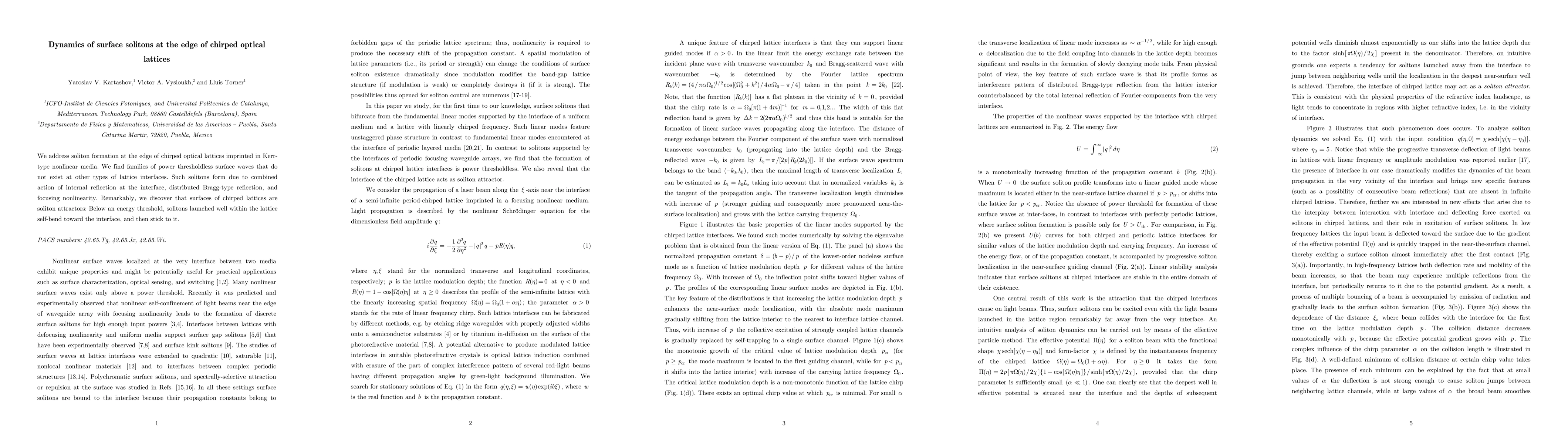 This paper explores the formation of solitons at the edge of chirped optical lattices in Kerr-type nonlinear media, revealing the existence of power thresholdless surface waves. These solitons are attracted to the lattice interface due to a combination of internal reflection, distributed Bragg reflection, and focusing nonlinearity.