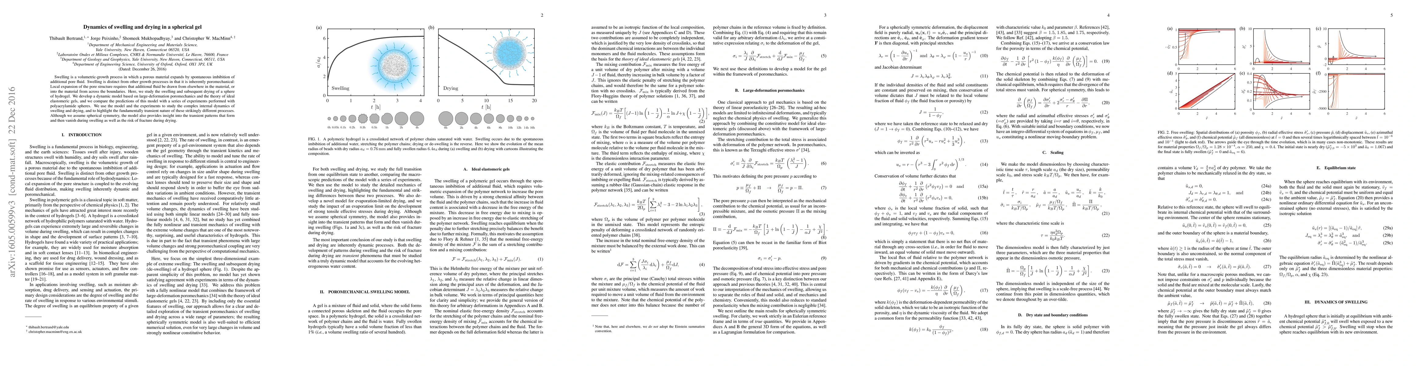 This paper develops a dynamic model based on poromechanics to study the swelling and drying processes in spherical hydrogels, comparing model predictions with experimental results on polyacrylamide spheres to explore the transient internal dynamics and fracture risks during these processes.