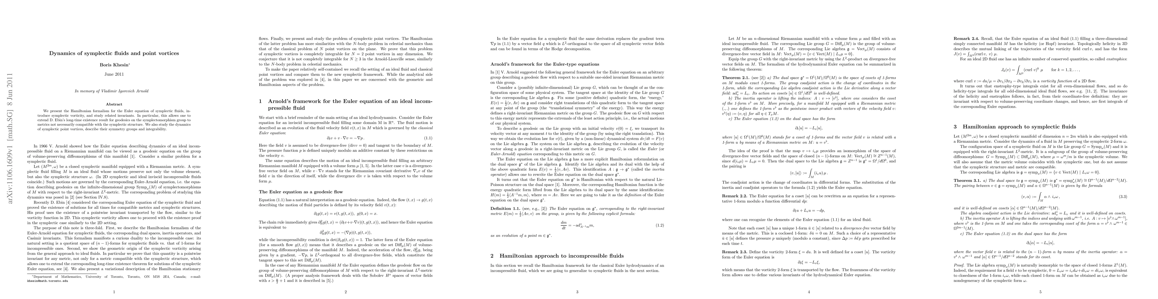 This research is significant as it advances the understanding of symplectic fluid dynamics, extending existing results and providing new insights into the behavior of symplectic point vortices, which have applications in various fields including classical and celestial mechanics.