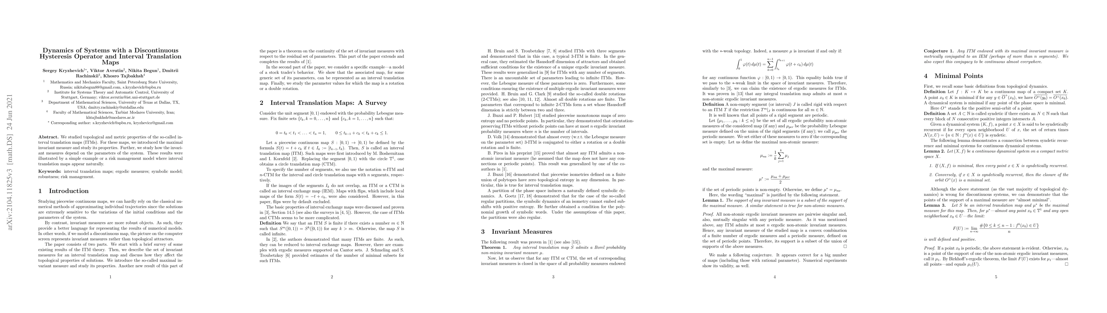 This paper investigates the topological and metric properties of interval translation maps (ITMs), introducing and analyzing a maximal invariant measure. It explores how invariant measures vary with system parameters, exemplified through a risk management model.