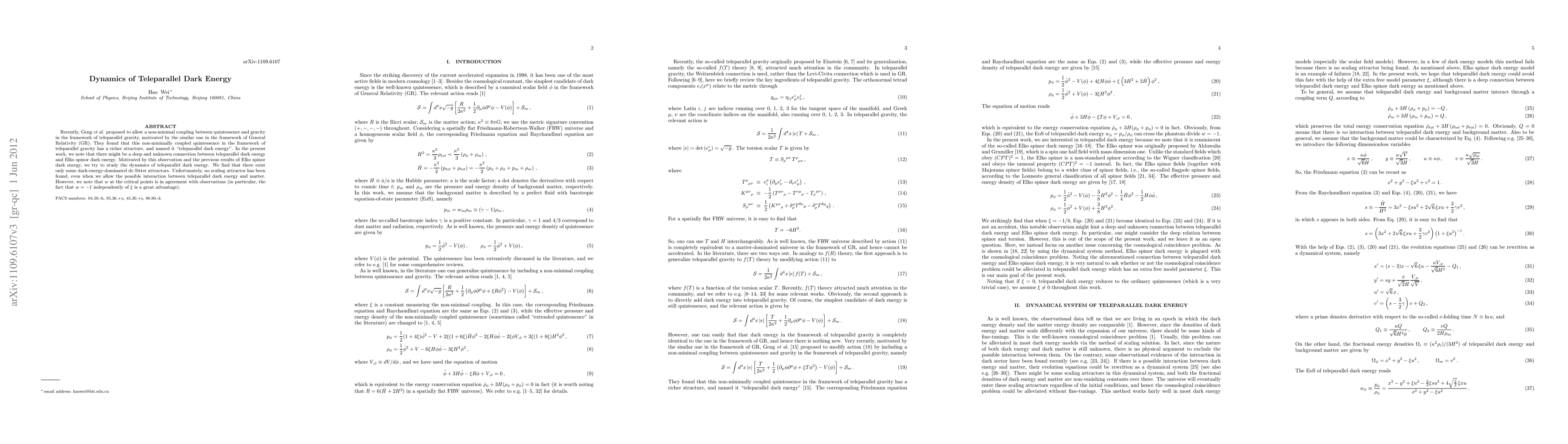 This paper explores the dynamics of "teleparallel dark energy," a non-minimal coupling between quintessence and gravity in teleparallel gravity, finding de Sitter attractors but no scaling solutions. It notes that $w=-1$ at critical points, aligning with observational data.