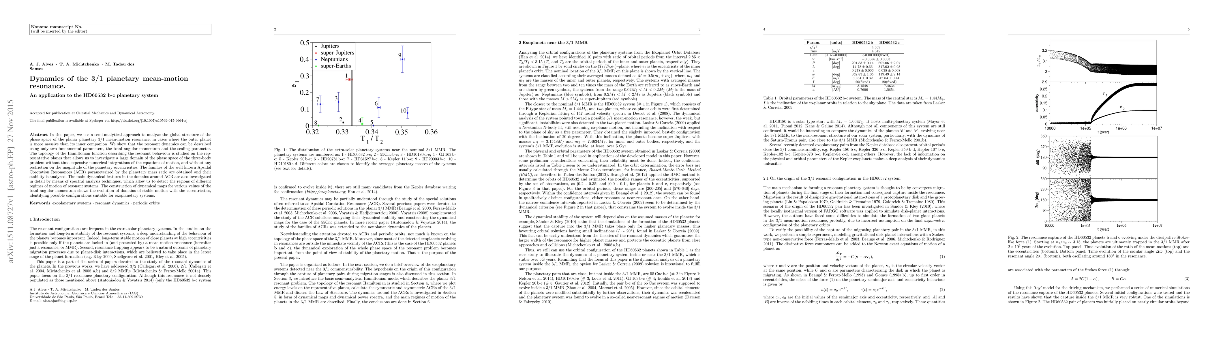 This paper employs a semi-analytical method to explore the dynamics of the 3/1 mean-motion resonance in planetary systems, focusing on the HD60532 b-c system. It reveals that the resonant dynamics depend on total angular momentum and a scaling parameter, allowing detailed investigation of phase space without extensive numerical simulations.
