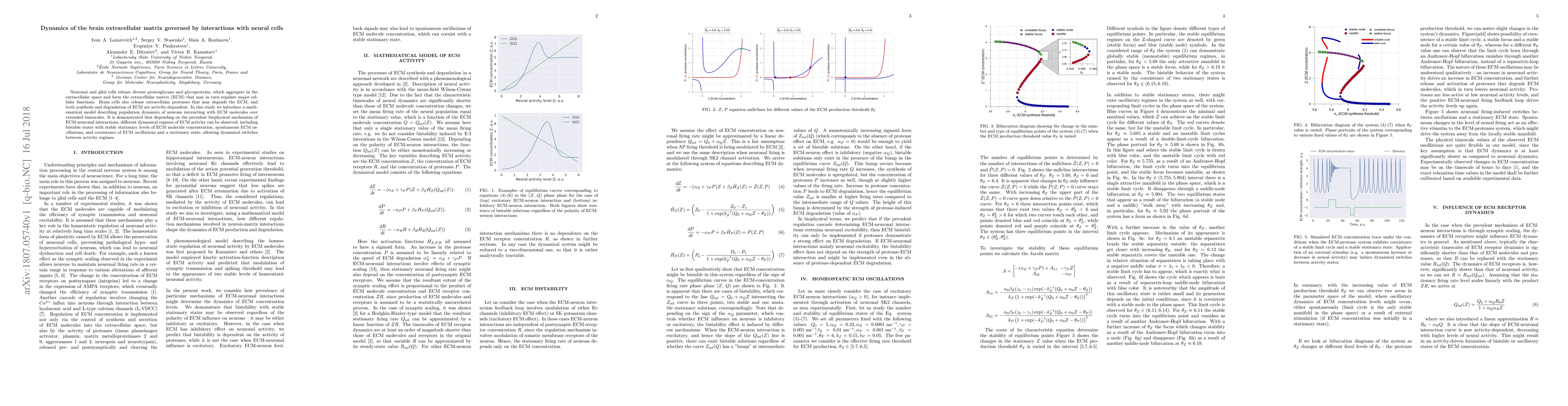 Neuronal and glial cells release diverse proteoglycans and glycoproteins, which aggregate in the extracellular space and form the extracellular matrix (ECM) that may in turn regulate major cellular functions. Brain cells also release extracellular proteases that may degrade the ECM, and both synthesis and degradation of ECM are activity-dependent. In this study we introduce a mathematical model describing population dynamics of neurons interacting with ECM molecules over extended timescales. It is demonstrated that depending on the prevalent biophysical mechanism of ECM-neuronal interactions, different dynamical regimes of ECM activity can be observed, including bistable states with stable stationary levels of ECM molecule concentration, spontaneous ECM oscillations, and coexistence of ECM oscillations and a stationary state, allowing dynamical switches between activity regimes.