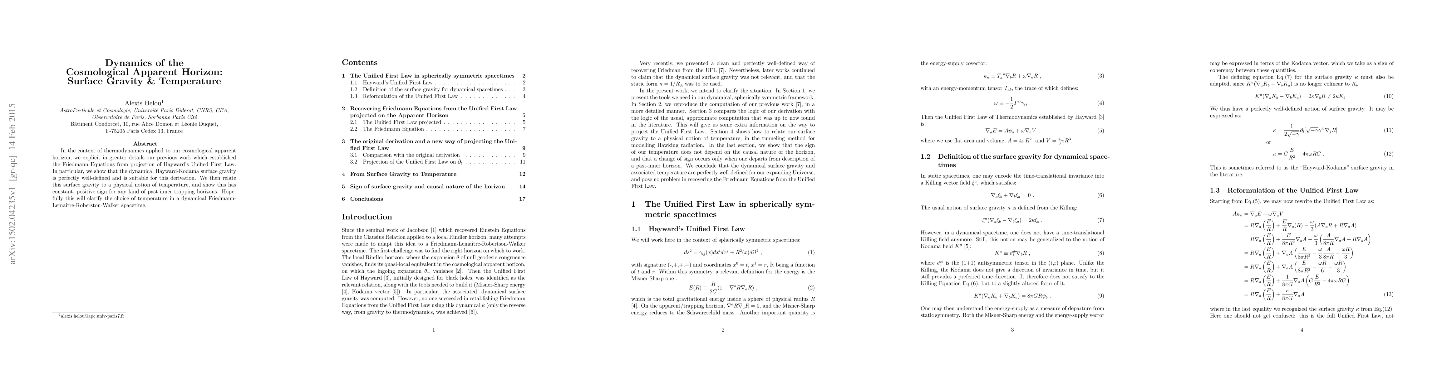 In the context of thermodynamics applied to our cosmological apparent horizon, we explicit in greater details our previous work which established the Friedmann Equations from projection of Hayward's Unified First Law. In particular, we show that the dynamical Hayward-Kodama surface gravity is perfectly well-defined and is suitable for this derivation. We then relate this surface gravity to a physical notion of temperature, and show this has constant, positive sign for any kind of past-inner trapping horizons. Hopefully this will clarify the choice of temperature in a dynamical Friedmann-Lema\^itre-Roberston-Walker spacetime.