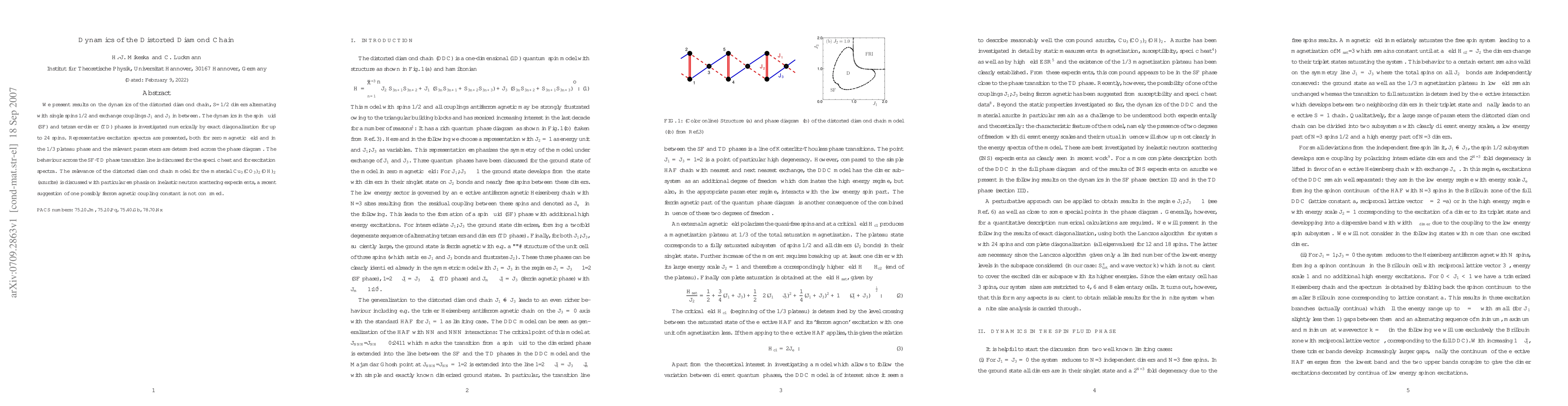 Researchers investigated the dynamics of a distorted diamond chain model in two phases: spin fluid (SF) and tetramer-dimer (TD), finding representative excitation spectra and determining relevant parameters across the phase diagram.