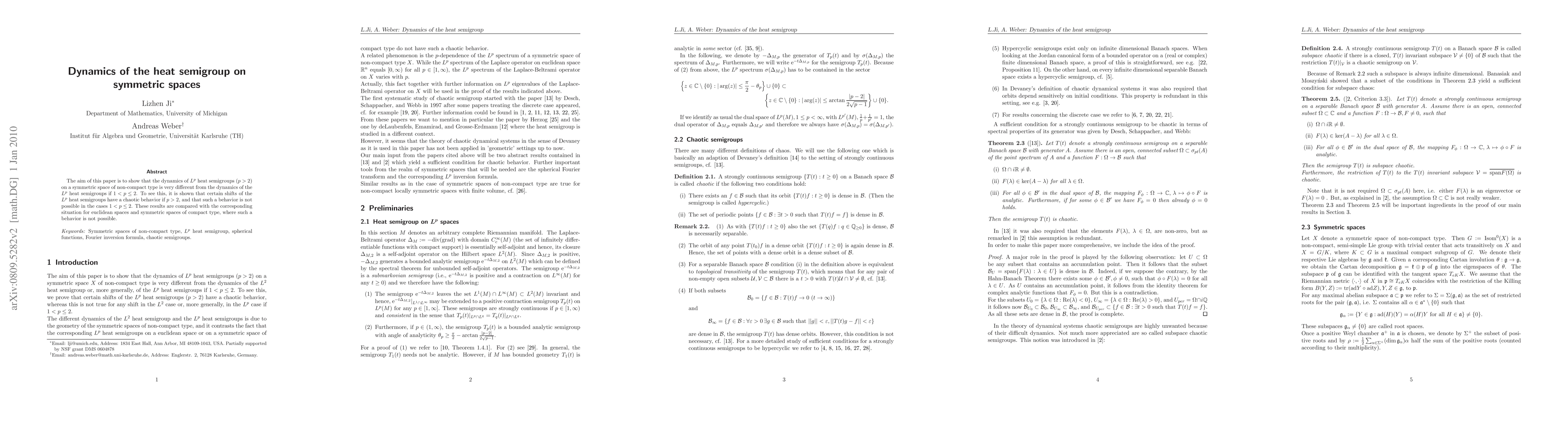 This paper demonstrates that $L^p$ heat semigroup dynamics on non-compact symmetric spaces exhibit chaotic behavior for $p>2$, contrasting with the stable dynamics for $p\leq 2$, and compares these findings with behaviors in Euclidean and compact symmetric spaces.
