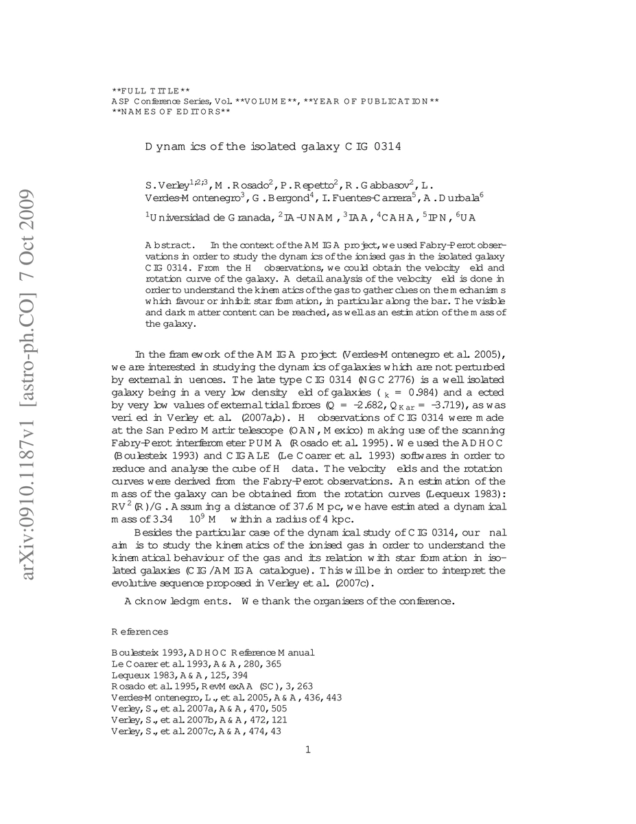 The research utilized Fabry-Perot observations within the AMIGA project to analyze the dynamics of ionized gas in the isolated galaxy CIG 0314. Key findings include deriving the velocity field and rotation curve, examining gas kinematics for star formation insights, estimating visible and dark matter content, and determining the galaxy's mass.