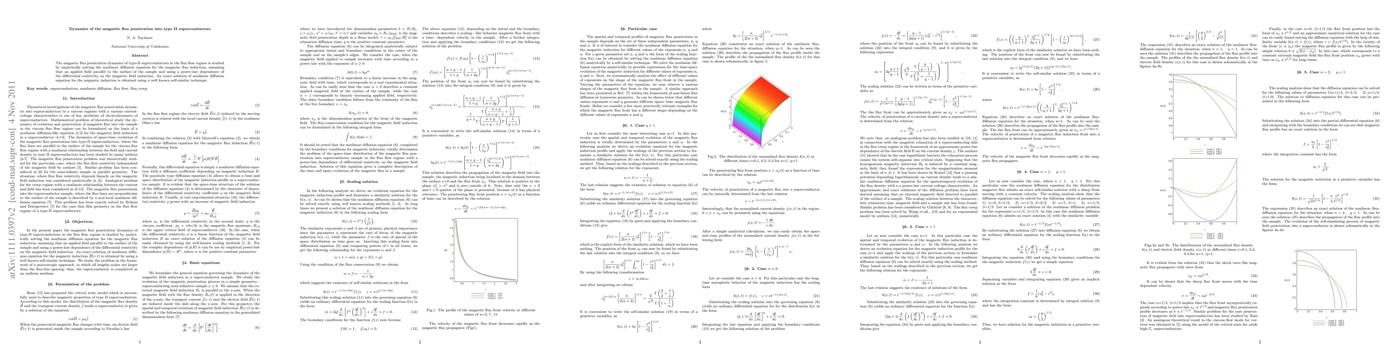 This research provides an exact analytical solution for magnetic flux penetration into type II superconductors in the flux flow regime, assuming a power-law increase in external magnetic field and flux flow resistivity as a power-law function of magnetic field induction. The solution describes the spatial and temporal distribution of magnetic induction within the sample.