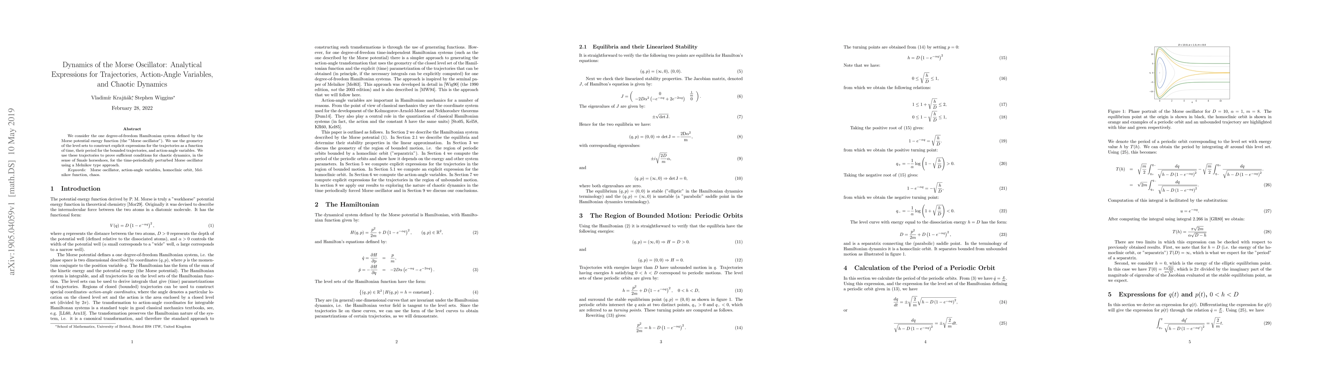 This research paper develops analytical expressions for the dynamics of the Morse oscillator, including trajectories, action-angle variables, and conditions for chaotic dynamics, and applies a Melnikov type approach to study time-periodically perturbed systems.