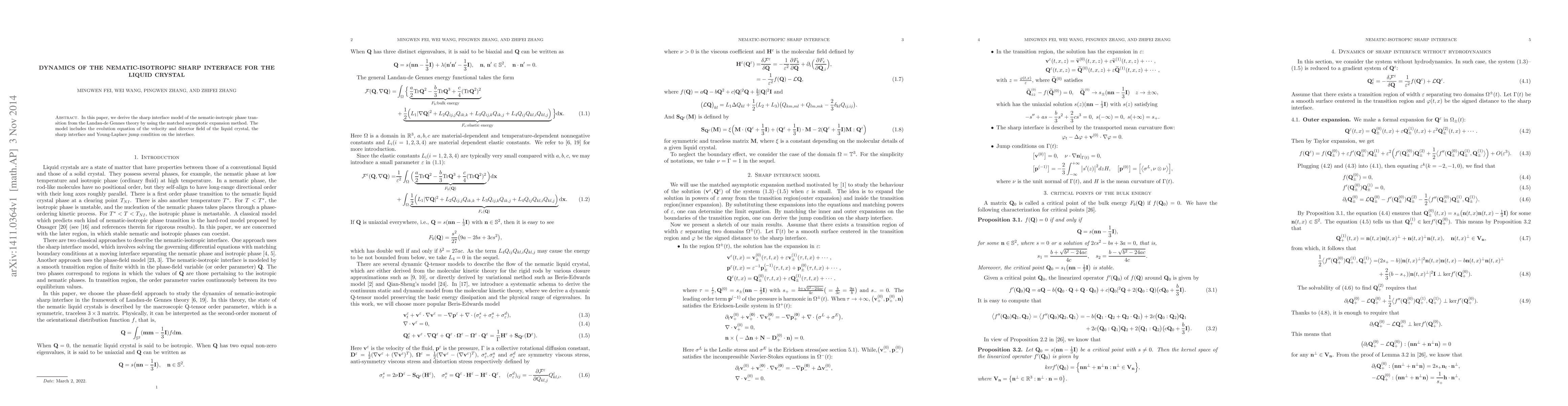 This paper develops a sharp interface model for the nematic-isotropic phase transition in liquid crystals, derived from the Landau-de Gennes theory using matched asymptotic expansion. The model encompasses the evolution of the velocity and director field, along with the sharp interface and Young-Laplace jump condition.