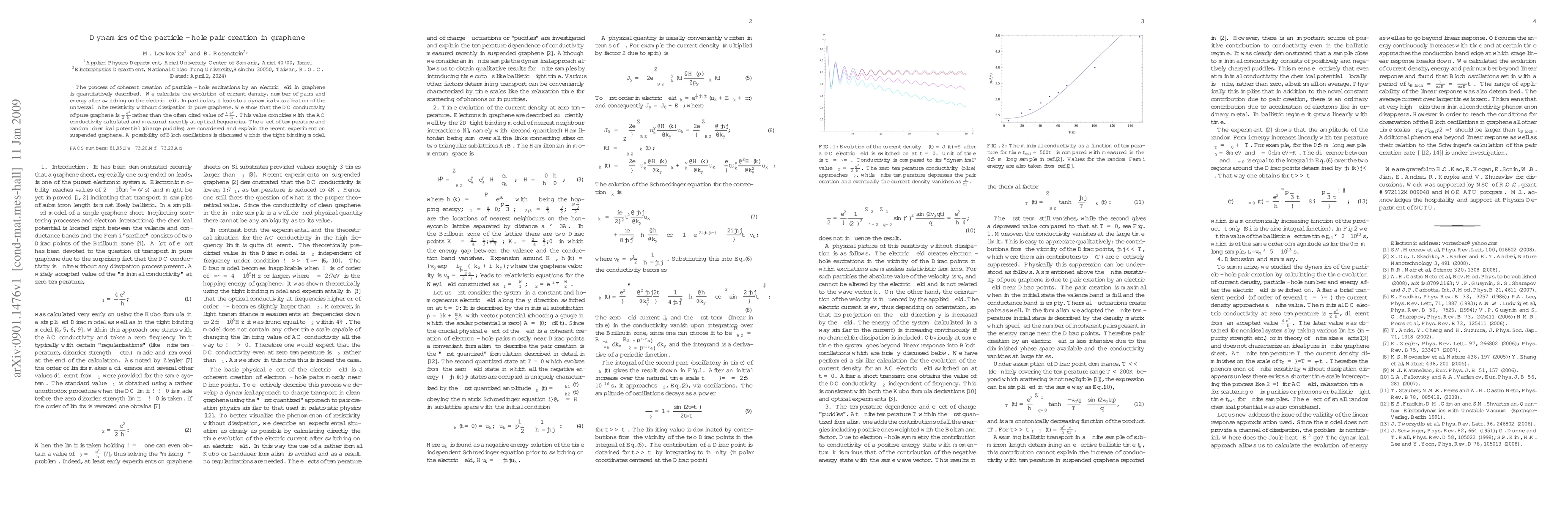 The process of coherent creation of particle - hole excitations by an electric field in graphene is quantitatively described. We calculate the evolution of current density, number of pairs and energy after switching on the electric field. In particular, it leads to a dynamical visualization of the universal finite resistivity without dissipation in pure graphene. We show that the DC conductivity of pure graphene is rather $\frac{\pi e^{2}}{2 h}$ than the often cited value of $\frac{4 e^{2}}{\pi h}$. This value coincides with the AC conductivity calculated and measured recently at optical frequencies. The effect of temperature and random chemical potential (charge puddles) are considered and explain the recent experiment on suspended graphene. A possibility of Bloch oscillations is discussed within the tight binding model.