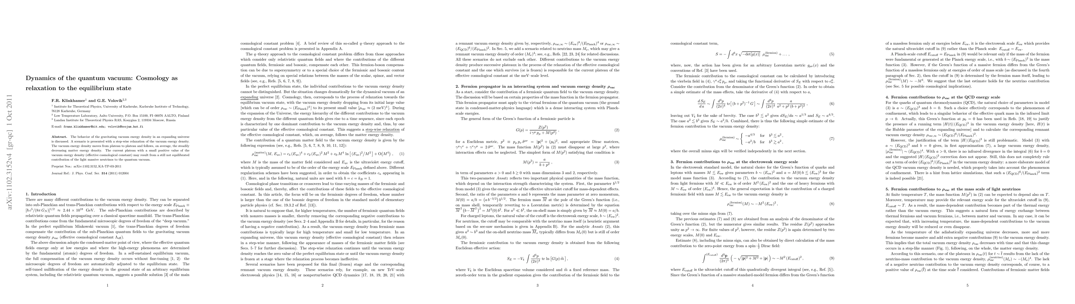 The behavior of the gravitating vacuum energy density in an expanding universe is discussed. A scenario is presented with a step-wise relaxation of the vacuum energy density. The vacuum energy density moves from plateau to plateau and follows, on average, the steadily decreasing matter energy density. The current plateau with a small positive value of the vacuum energy density (effective cosmological constant) may result from a still not equilibrated contribution of the light massive neutrinos to the quantum vacuum.