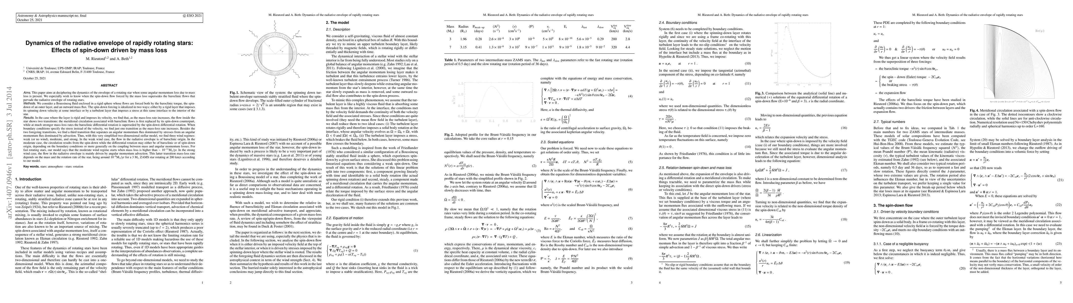(abridged) This paper aims at deciphering the dynamics of the envelope of a rotating star when some angular momentum loss due to mass loss is present. We especially wish to know when the spin-down flow forced by the mass loss supersedes the baroclinic flows that pervade the radiative envelope of rotating stars. We consider a Boussinesq fluid enclosed in a rigid sphere whose flows are forced both by the baroclinic torque, the spin-down of an outer layer, and an outward mass flux. The spin-down forcing is idealized in two ways: either by a rigid layer that imposes its spinning down velocity at some interface or by a turbulent layer that imposes a stress at this same interface to the interior of the star. In the case where the layer is rigid and imposes its velocity, we find that, as the mass-loss rate increases, the flow inside the star shows two transitions: the meridional circulation associated with baroclinic flows is first replaced by its spin-down counterpart, while at much stronger mass-loss rates the baroclinic differential rotation is superseded by the spin-down differential rotation. In fact, we find three wind regimes: weak (or no wind), moderate, and strong. In the first case, the flow in the radiative envelope is of baroclinic origin. In the moderate case, the circulation results from the spin-down while the differential rotation may either be of baroclinic or of spin-down origin, depending on the coupling between mass and angular momentum losses. For fast rotating stars, our model says that the moderate wind regime starts when mass loss is higher than ~1e-11 Msun/yr. In the strong wind case, the flow in the radiative envelope is mainly driven by angular momentum advection. This latter transition depends on the mass and the rotation rate of the star, being around 1e-8 Msun/yr for a 3 Msun ZAMS star rotating at 200 km/s according to our model.