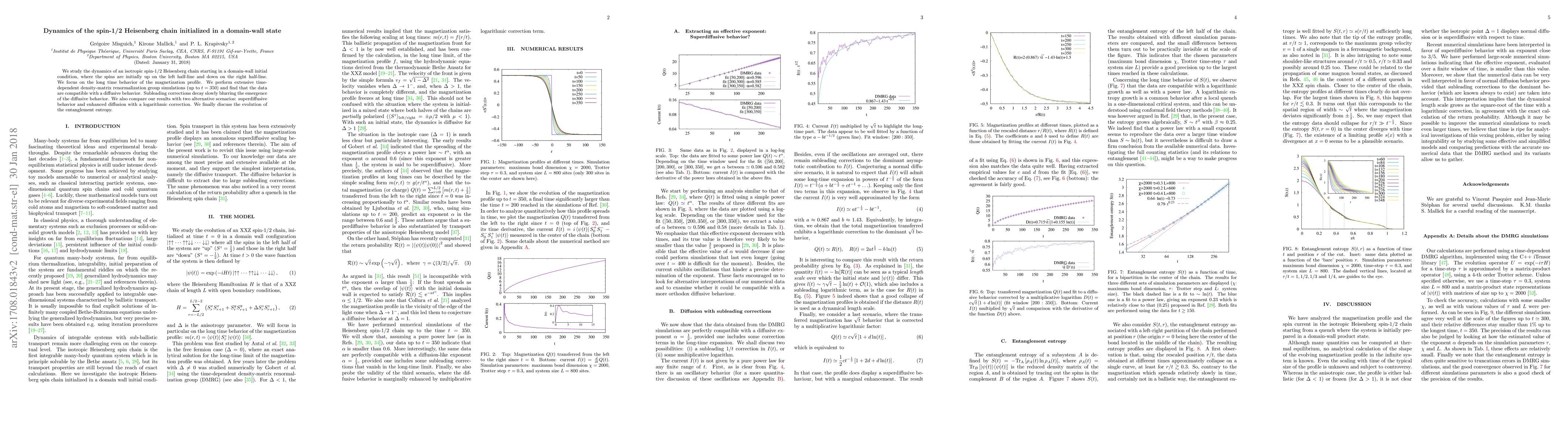 We study the dynamics of an isotropic spin-1/2 Heisenberg chain starting in a domain-wall initial condition, where the spins are initially up on the left half-line and down on the right half-line. We focus on the long-time behavior of the magnetization profile. We perform extensive time-dependent density-matrix renormalization group simulations (up to t=350) and find that the data are compatible with a diffusive behavior. Subleading corrections decay slowly blurring the emergence of the diffusive behavior. We also compare our results with two alternative scenarios: superdiffusive behavior and enhanced diffusion with a logarithmic correction. We finally discuss the evolution of the entanglement entropy.