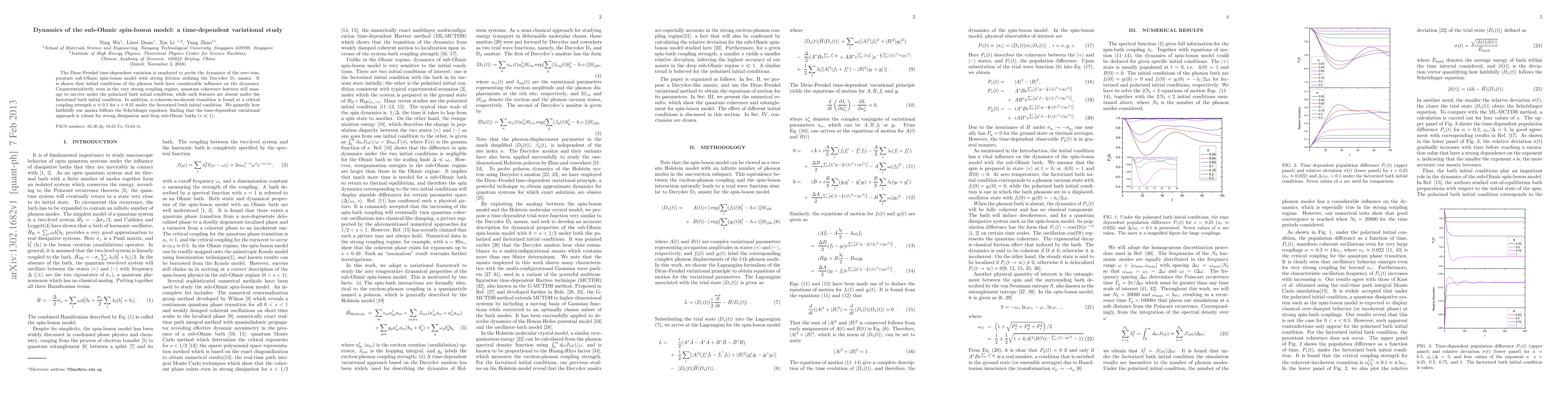 The Dirac-Frenkel time-dependent variation is employed to probe the dynamics of the zero temperature sub-Ohmic spin-boson model with strong friction utilizing the Davydov D1 ansatz. It is shown that initial conditions of the phonon bath have considerable influence on the dynamics. Counterintuitively, even in the very strong coupling regime, quantum coherence features still manage to survive under the polarized bath initial condition, while such features are absent under the factorized bath initial condition. In addition, a coherent-incoherent transition is found at a critical coupling strength alpha ~ 0.1 for s=0.25 under the factorized bath initial condition. We quantify how faithfully our ansatz follows the Schr\"{o}dinger equation, finding that the time-dependent variational approach is robust for strong dissipation and deep sub-Ohmic baths (s<<1).