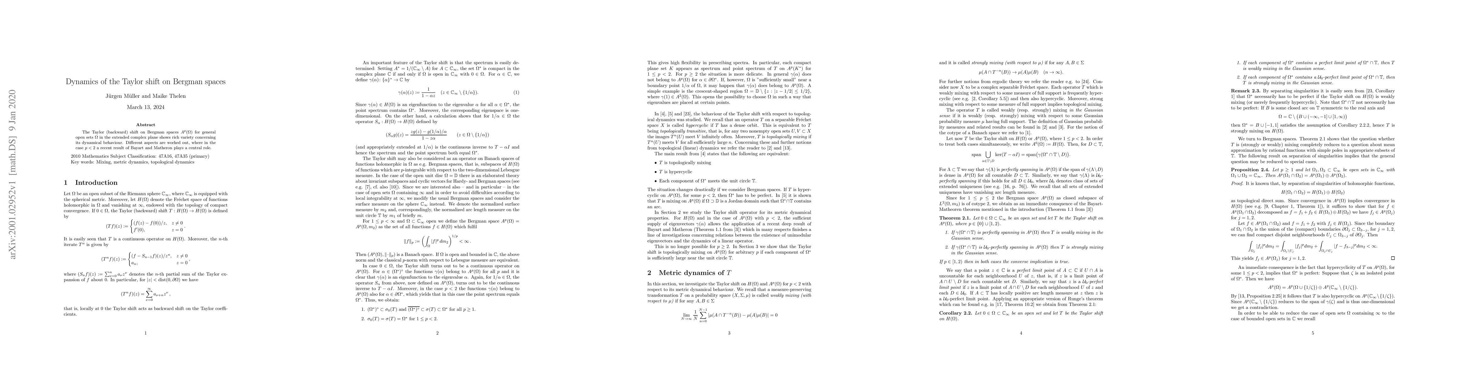 Summary: This paper explores the dynamics of the Taylor shift on Bergman spaces $A^p(\om)$, focusing on its behavior for various open sets $\om$ and particularly highlighting the role of a recent result by Bayart and Matheron when $p<2$. The study reveals diverse dynamical characteristics of the Taylor shift.