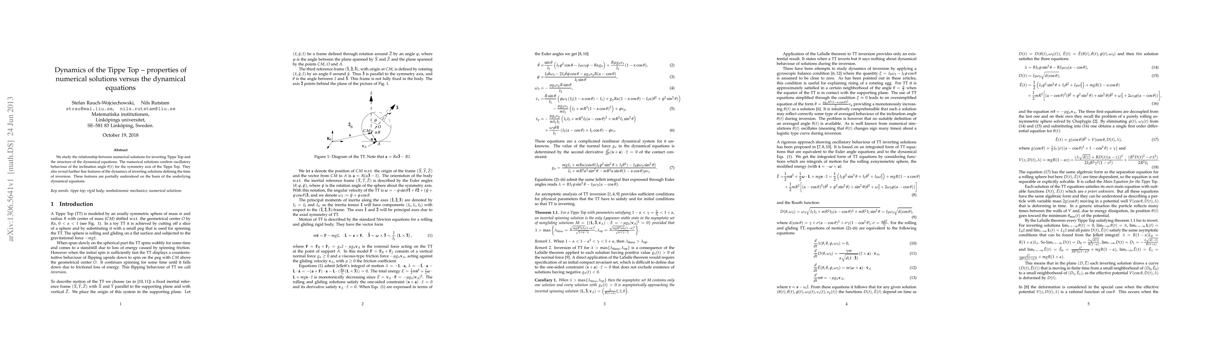 This paper investigates the dynamics of the Tippe Top, comparing numerical solutions to the underlying dynamical equations. Numerical simulations confirm oscillatory behavior in the inclination angle and reveal fine features of inversion timing, partially explained by the equations.