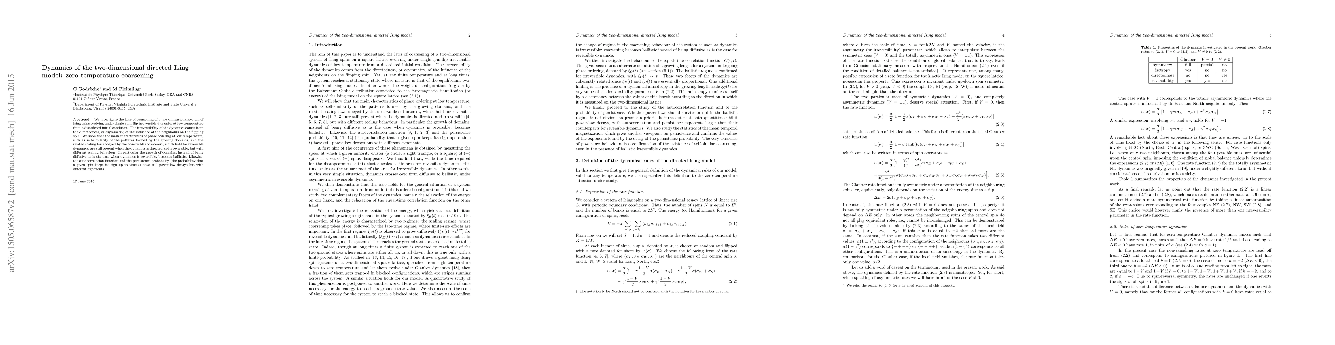 This paper explores the coarsening dynamics of a two-dimensional directed Ising model at zero temperature, revealing that despite the irreversible, asymmetric dynamics, self-similarity and scaling laws persist, though with ballistic growth instead of diffusive and altered power-law decays in autocorrelation and persistence probability.