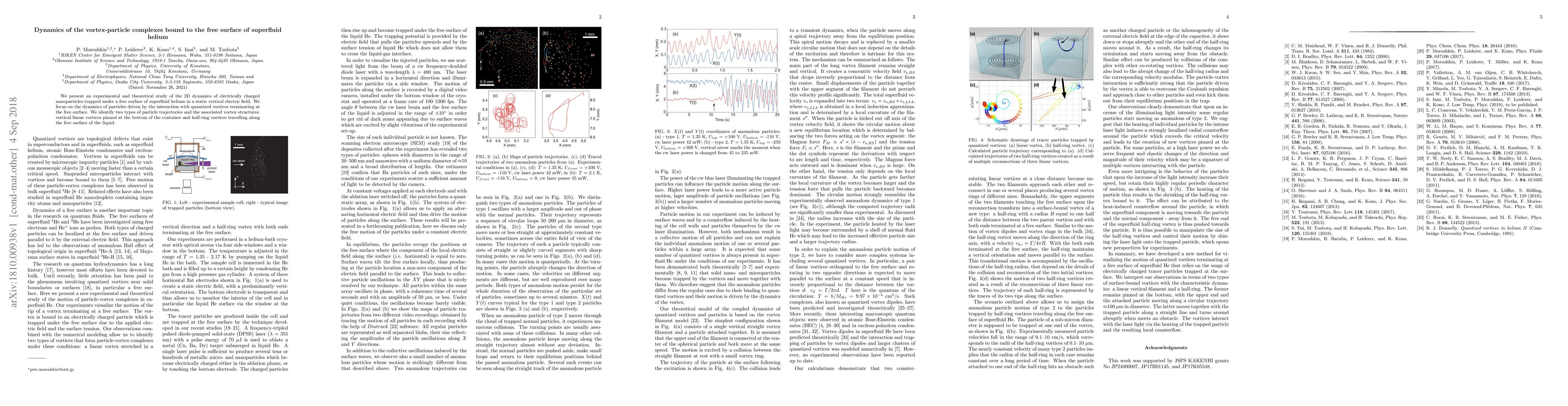 Researchers studied how charged nanoparticles move in superfluid helium under a static electric field, discovering two types of particle trajectories driven by quantized vortices at the liquid's surface.