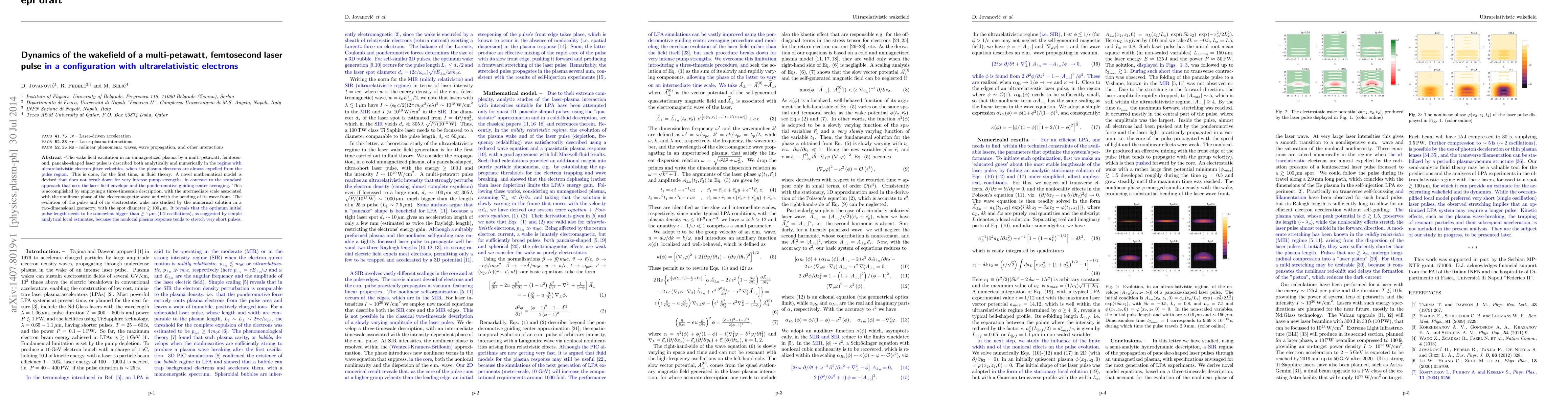 The wake field excitation in an unmagnetized plasma by a multi-petawatt, femtosecond, pancake-shaped laser pulse is described both analytically and numerically in the regime with ultrarelativistic electron jitter velocities, when the plasma electrons are almost expelled from the pulse region. This is done, for the first time, in fluid theory. A novel mathematical model is devised that does not break down for very intense pump strengths, in contrast to the standard approach that uses the laser field envelope and the ponderomotive guiding center averaging. This is accomplished by employing a three-timescale description, with the intermediate scale associated with the nonlinear phase of the electromagnetic wave and with the bending of its wave front. The evolution of the pulse and of its electrostatic wake are studied by the numerical solution in a two-dimensional geometry, with the spot diameter \geq 100 microns. It reveals that the optimum initial pulse length needs to be somewhat bigger than 1 micron (1-2 oscillations), as suggested by simple analytical local estimates, because the nonlocal plasma response tends to stretch very short pulses.