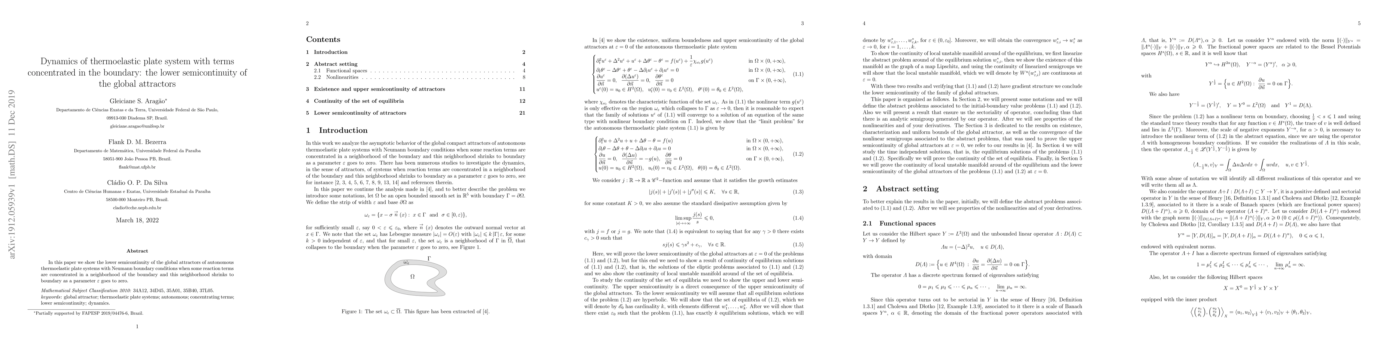 This paper demonstrates the lower semicontinuity of global attractors for thermoelastic plate systems with Neumann boundary conditions, where reaction terms concentrated near the boundary converge to the boundary as a parameter approaches zero. The study focuses on the dynamics of such systems as boundary conditions change.