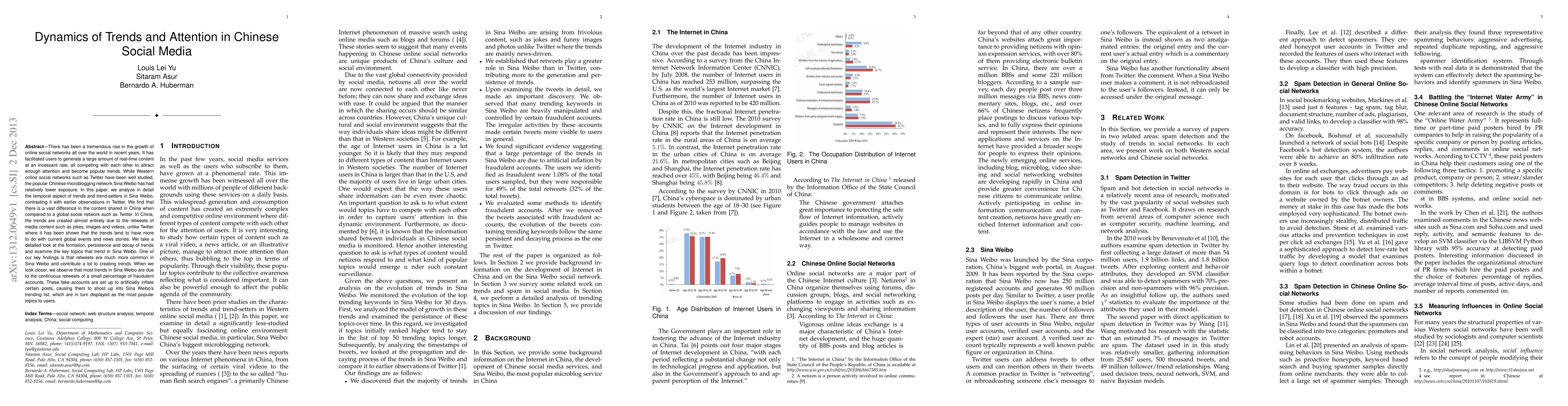 This paper analyzes the dynamics of trends and attention on Sina Weibo, contrasting it with Twitter. It finds that trends on Sina Weibo are largely driven by media content retweets, unlike Twitter's trend formation tied to global events. Notably, many Sina Weibo trends are artificially inflated by fraudulent accounts.