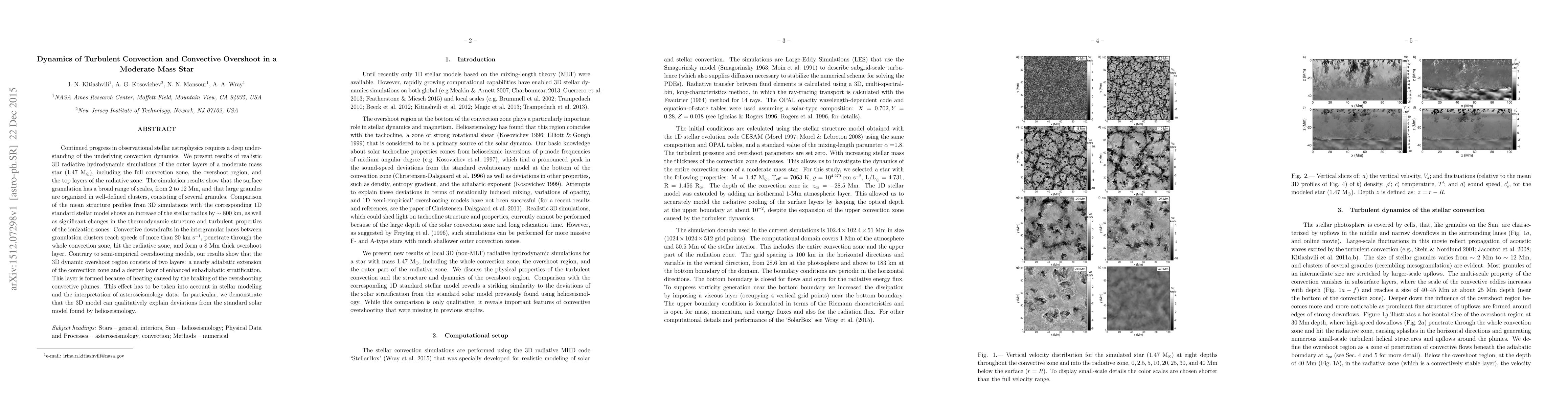 This paper presents 3D simulations of turbulent convection in a moderate mass star, revealing complex granulation patterns and a two-layer convective overshoot region. The simulations show significant deviations from 1D models, impacting the star's radius and thermodynamic structure, and suggest a new approach for interpreting asteroseismology data.