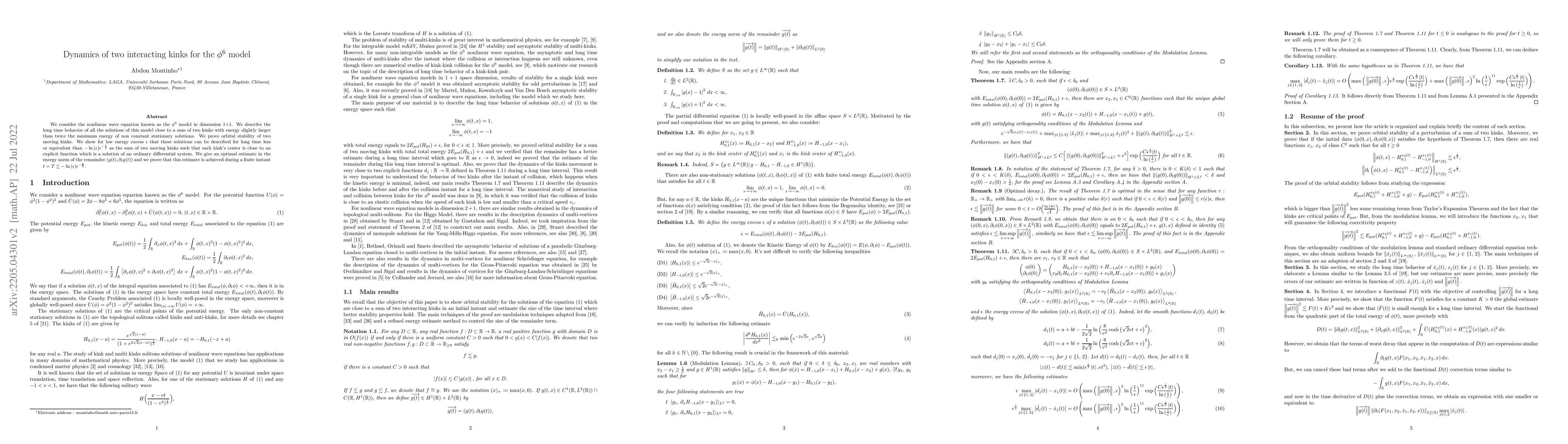 This paper studies the dynamics of two interacting kinks in the $\phi^{6}$ model, proving their orbital stability and describing their long-time behavior as the sum of two moving kinks with centers following an ordinary differential system. An optimal estimate for the remainder in the energy norm is provided, showing that this estimate is achieved within a finite time.