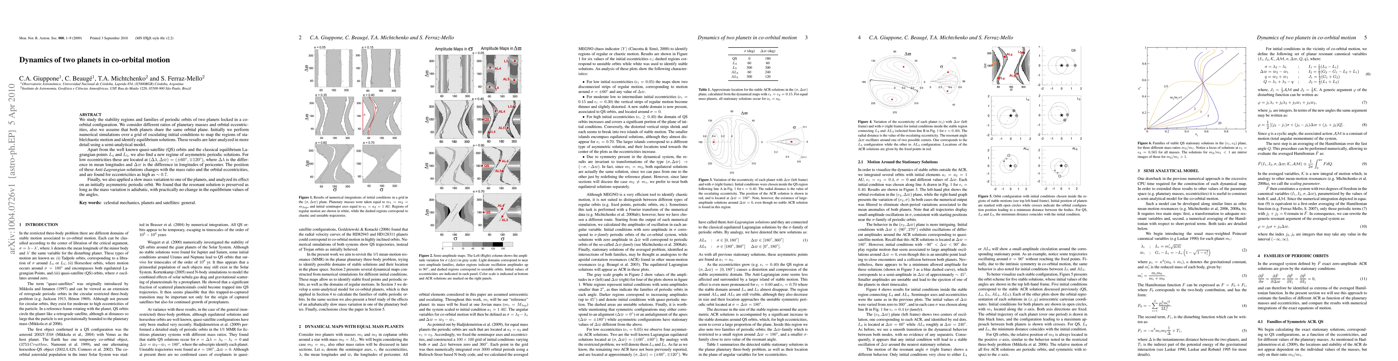 This paper investigates the dynamics of two planets in co-orbital motion, identifying stability regions and periodic orbits under various mass ratios and eccentricities. It reveals new asymmetric periodic solutions, termed Anti-Lagrangian, and demonstrates that these solutions remain stable under adiabatic mass variations.