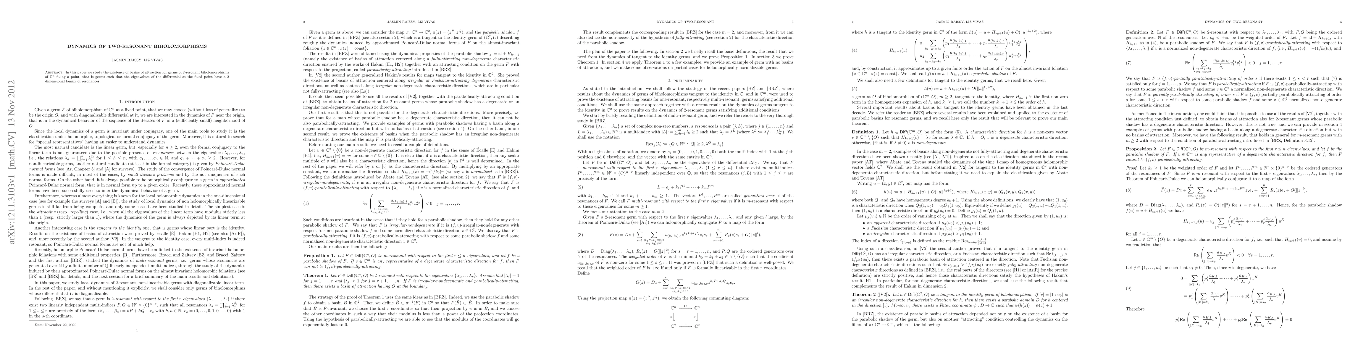 In this paper we study the existence of basins of attraction for germs of 2-resonant biholomorphisms of $\C^n$ fixing a point, that is germs such that the eigenvalues of the differential at the fixed point have a 2 dimensional family of resonances.