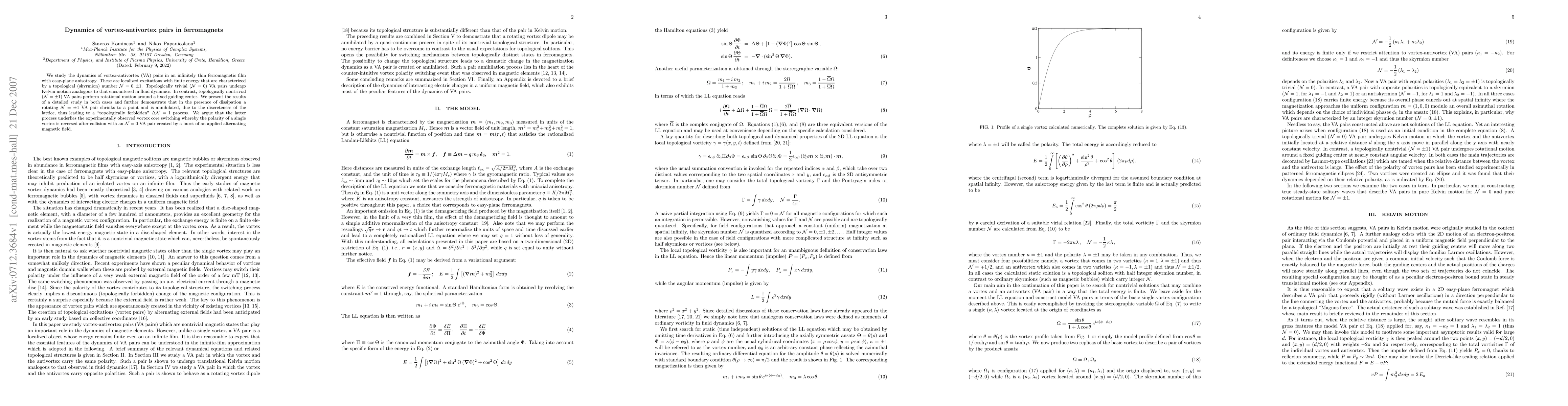 The paper presents a detailed analysis of the dynamics of vortex-antivortex pairs, identifying distinct motion types based on topological charge and demonstrating the effects of dissipation.