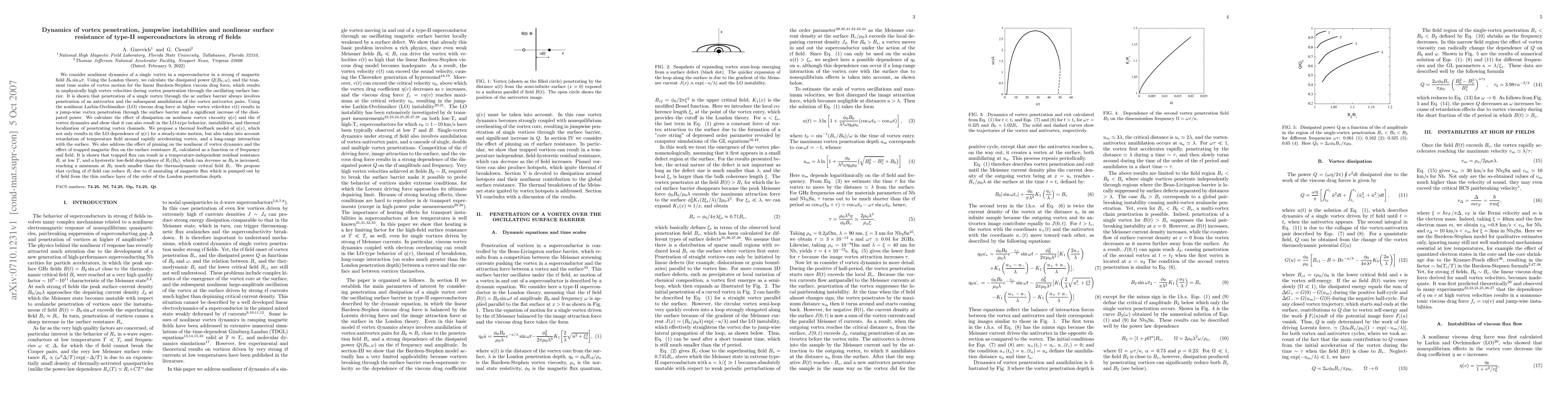 Research on type-II superconductors in strong rf fields reveals that vortex penetration involves antivortex annihilation and can lead to nonlinear dynamics and thermal localization, with trapped flux resulting in a temperature-independent residual resistance at low T.
