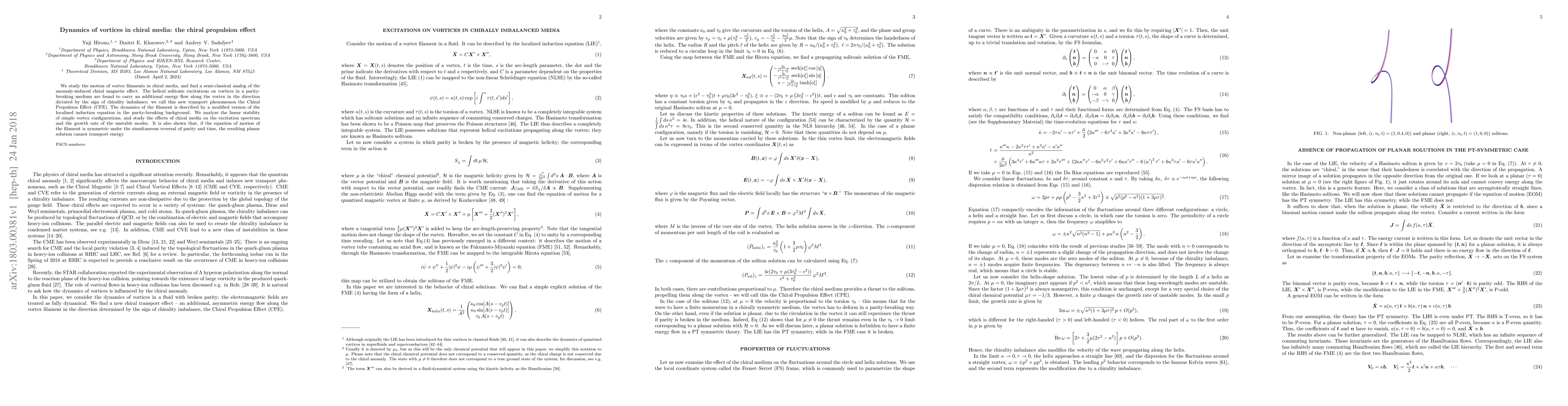 Researchers discovered a new phenomenon in chiral media called the Chiral Propulsion Effect, where vortex filaments carry energy along their length due to chirality imbalance. This effect is found in parity-breaking media and can transport energy in certain conditions.
