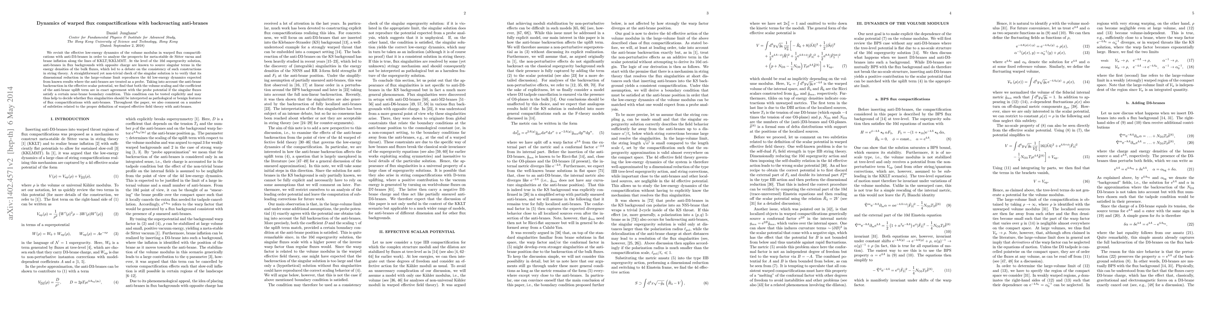 This paper investigates the effective dynamics of volume moduli in warped flux compactifications, focusing on the role of anti-D3-branes and their backreaction. The study confirms that the 4d low-energy dynamics align with the probe approximation when singular fluxes satisfy a specific boundary condition, potentially resolving debates on the consistency of such configurations in string theory.
