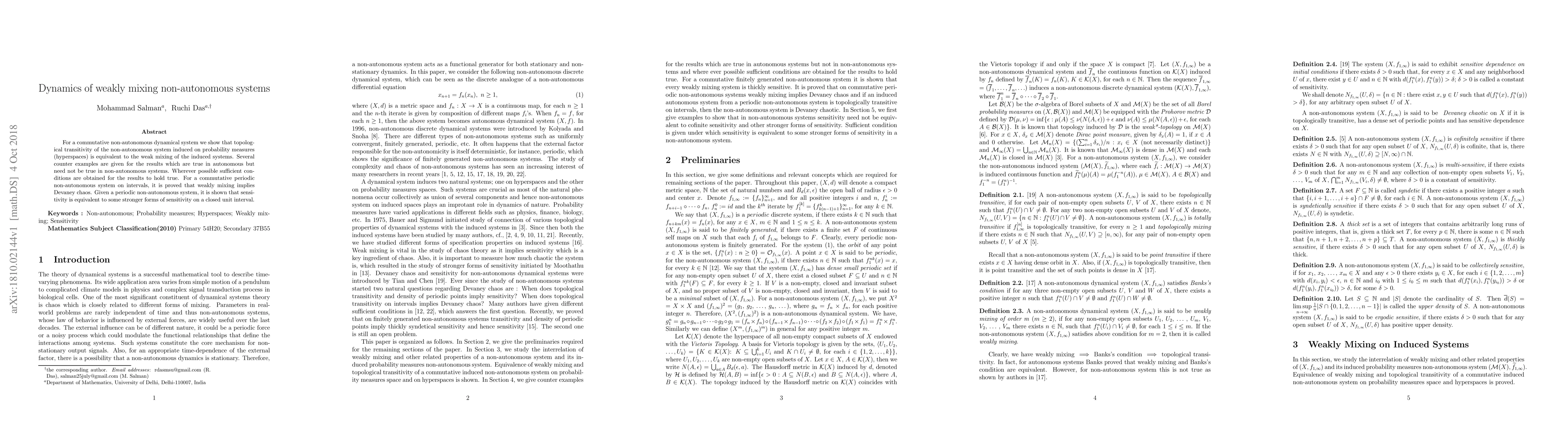 This research explores the dynamics of commutative non-autonomous systems, demonstrating the equivalence of topological transitivity and weak mixing for induced systems on probability measures. It also presents counterexamples highlighting differences from autonomous systems and proves that weak mixing implies Devaney chaos for periodic non-autonomous systems on intervals.