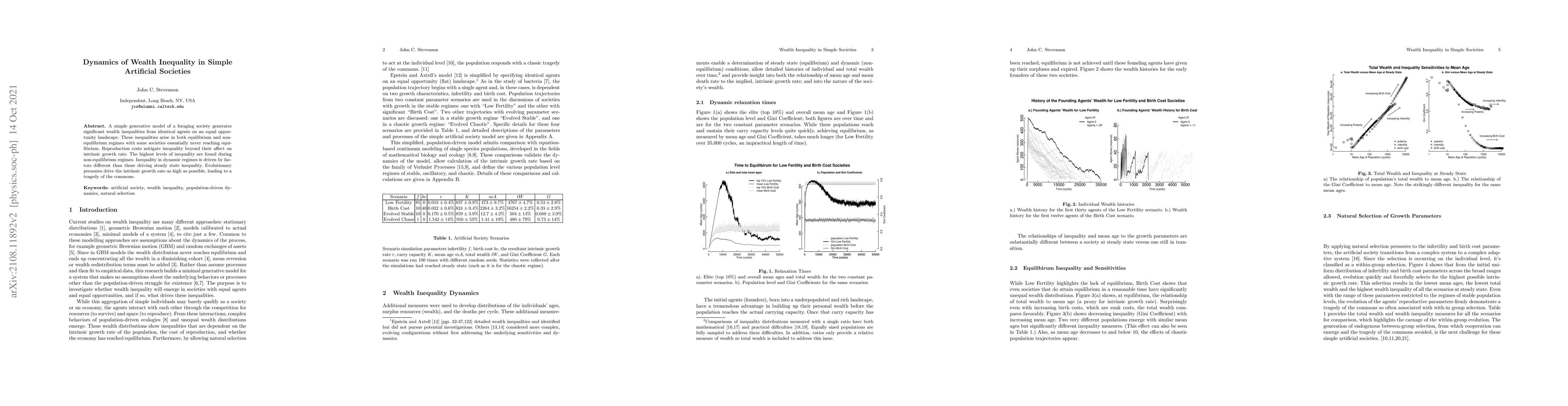 A simple generative model of a foraging society generates significant wealth inequalities from identical agents on an equal opportunity landscape. These inequalities arise in both equilibrium and non-equilibrium regimes with some societies essentially never reaching equilibrium. Reproduction costs mitigate inequality beyond their affect on intrinsic growth rate. The highest levels of inequality are found during non-equilibrium regimes. Inequality in dynamic regimes is driven by factors different than those driving steady state inequality. Evolutionary pressures drive the intrinsic growth rate as high as possible, leading to a tragedy of the commons.