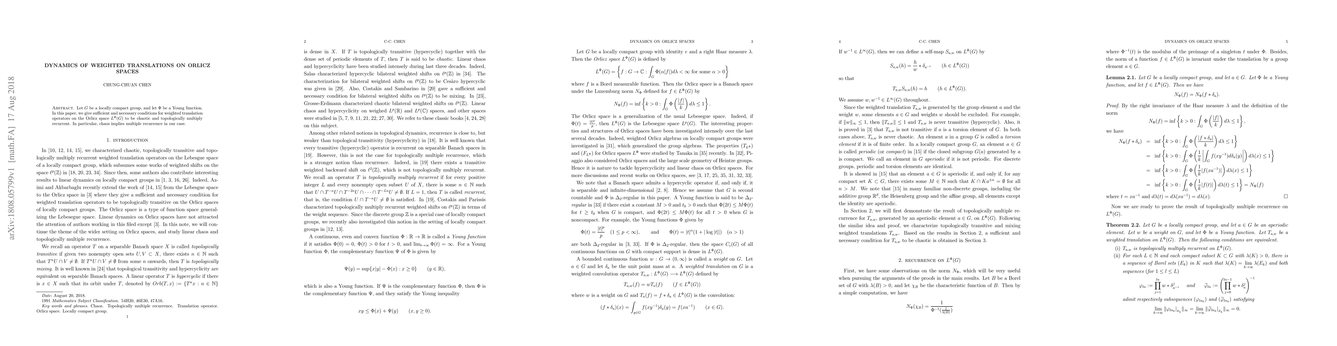 This paper investigates chaotic weighted translation operators on Orlicz spaces, providing conditions for chaos and topological multiple recurrence, with key implications for understanding the behavior of these operators in locally compact groups.