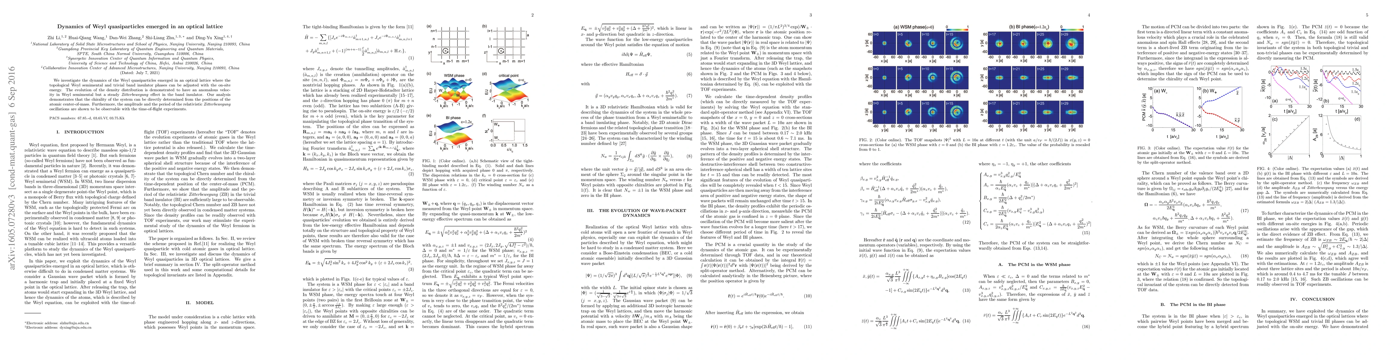 This study examines the dynamics of Weyl quasiparticles in an optical lattice, showing anomalous velocity in Weyl semimetal and Zitterbewegung in insulator phases. The topological properties and oscillations can be directly inferred from atomic center-of-mass positions and observed via time-of-flight experiments.