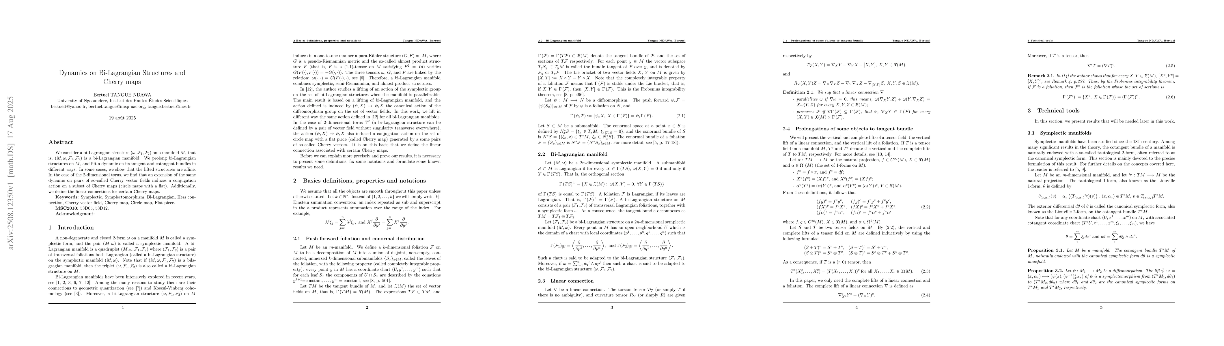 We consider a bi-Lagrangian structure $(\omega,\mathcal{F}_{1},\mathcal{F}_{2})$ on a manifold $M$, that is, $(M,\omega,\mathcal{F}_{1},\mathcal{F}_{2})$ is a bi-Lagrangian manifold. We prolong bi-Lagrangian structures on $M$, and lift a dynamic on its tangent and cotangent bundles in different ways. In some cases, we show that the lifted structures are affine. In the case of the 2-dimensional torus, we find that an extension of the same dynamic on pairs of so-called Cherry vector fields induces a conjugation action on a subset of Cherry maps (circle maps with a flat). Additionally, we define the linear connections for certain Cherry maps.