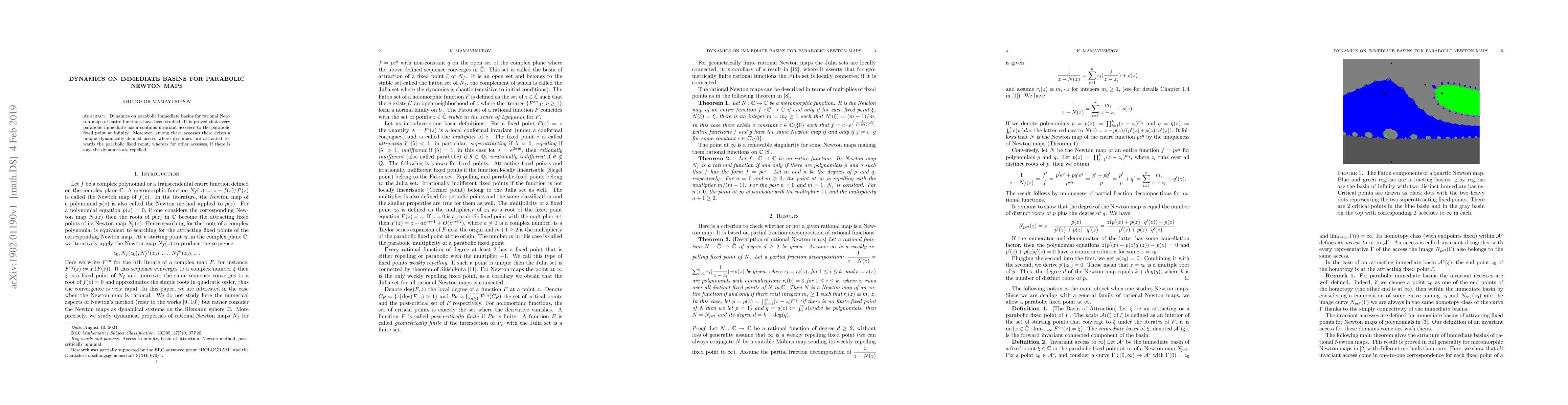 The research focuses on dynamics on parabolic immediate basins for rational Newton maps of entire functions, utilizing partial fraction decomposition of rational functions and analyzing fixed points, basins, and invariant accesses.