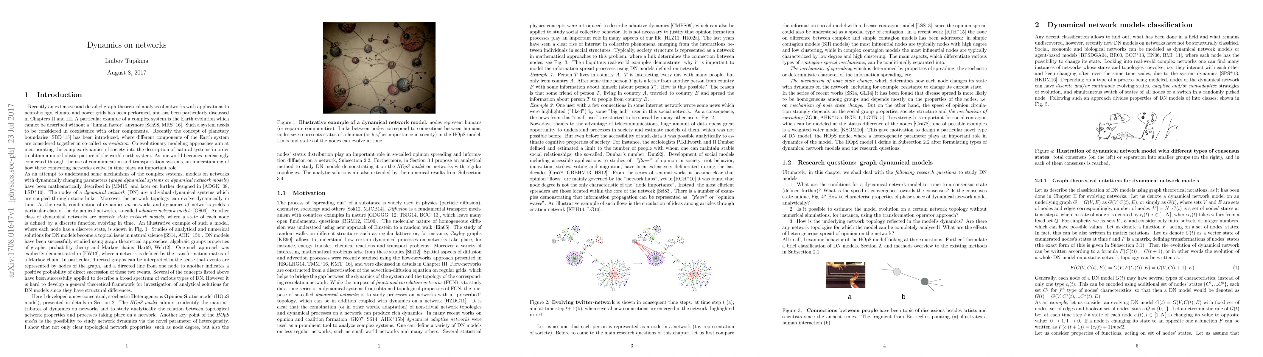 Researchers developed a new model to study dynamics on networks, showing that network properties like node degree and status distribution influence opinion spreading and information diffusion. This model can help study the co-evolution of global observables, such as climate variables and human population.