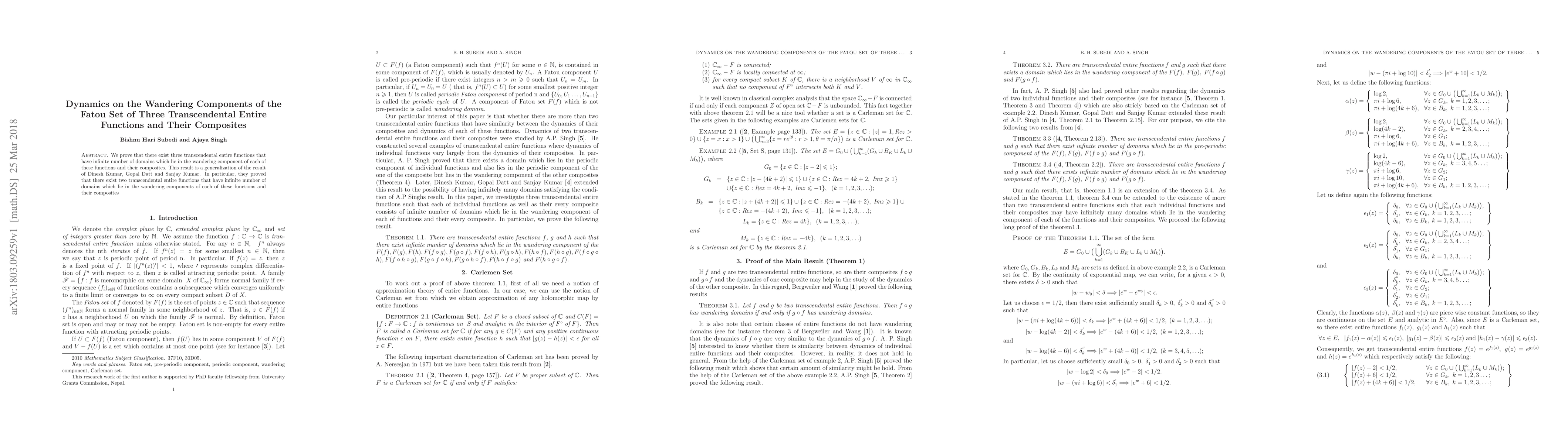 Researchers prove that three transcendental entire functions have infinitely many domains in their wandering components, a generalization of earlier work on two such functions.