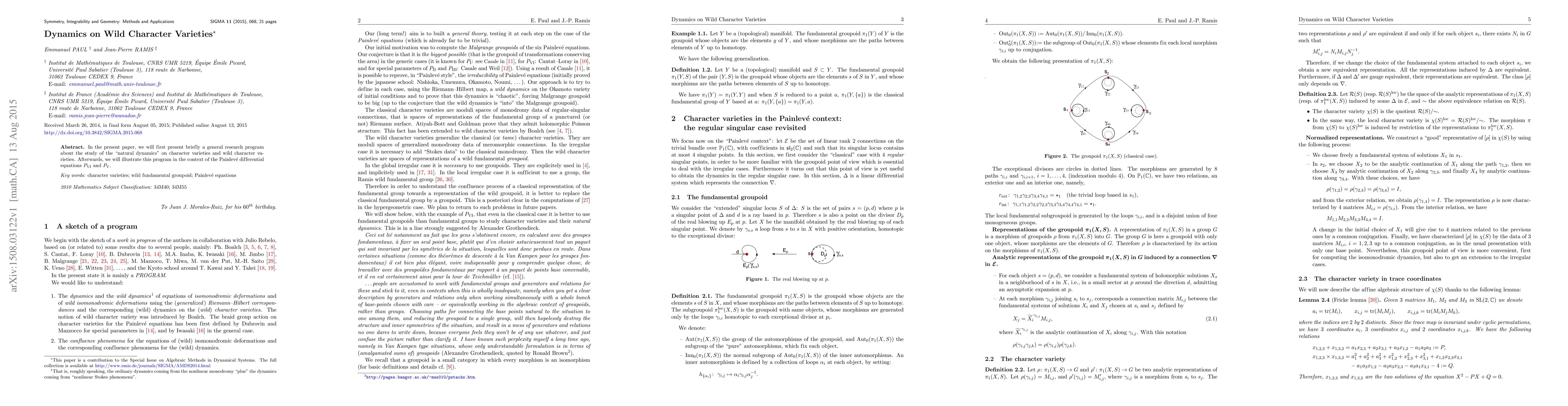 In the present paper, we will first present briefly a general research program about the study of the "natural dynamics" on character varieties and wild character varieties. Afterwards, we will illustrate this program in the context of the Painlev\'e differential equations $P_{\rm VI}$ and $P_{\rm V}$.