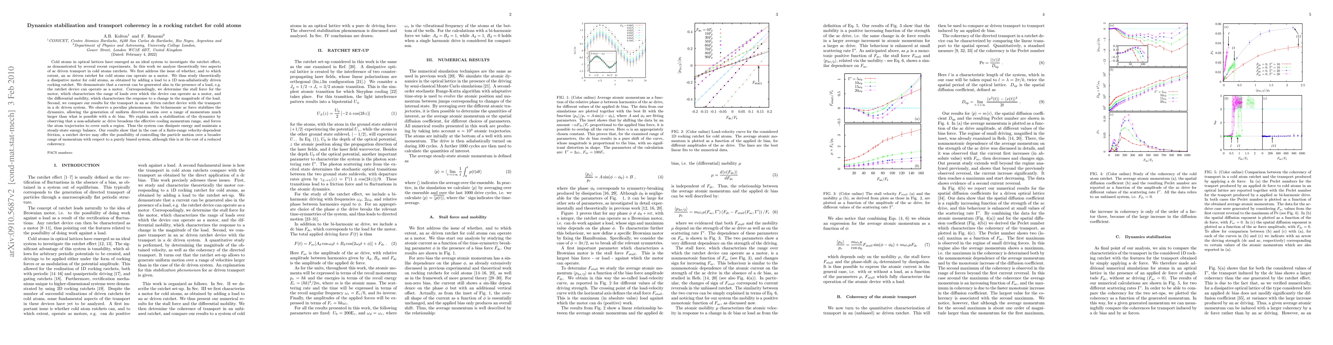 This paper theoretically investigates the dynamics stabilization and transport coherency in ac-driven cold atom ratchets, demonstrating that such systems can function as motors, and showing that bi-harmonic ac forces stabilize dynamics and enable broader momentum-range transport compared to dc-driven systems.