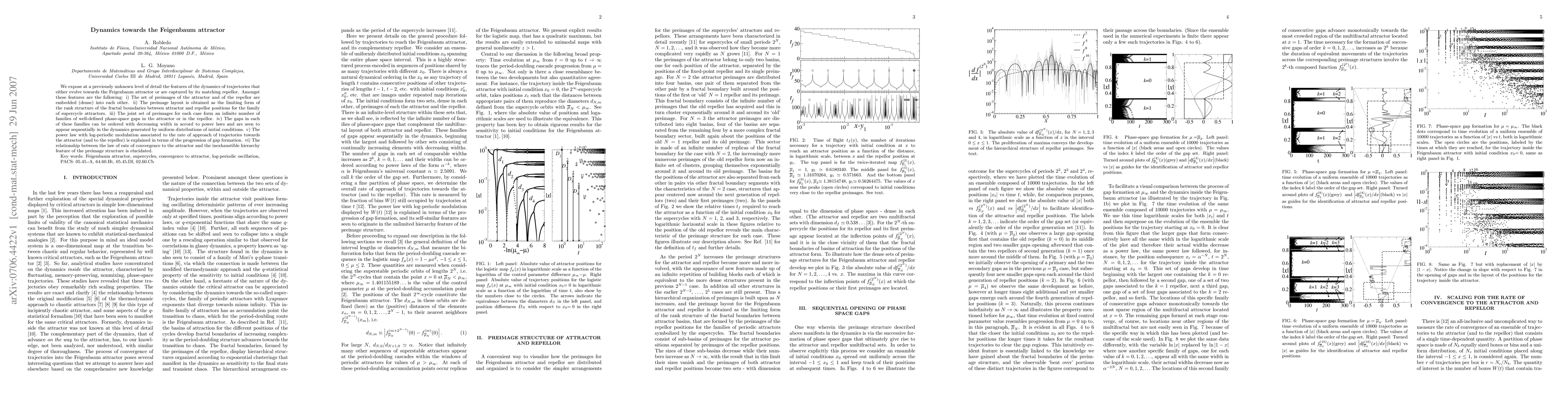 This paper delves into the intricate dynamics of trajectories converging to the Feigenbaum attractor or diverging from its repellor, revealing embedded preimages, fractal boundary structures, and infinite families of phase-space gaps. It explains the power law with log-periodic modulation governing the rate of convergence and the relationship between this rate and the hierarchical preimage structure.