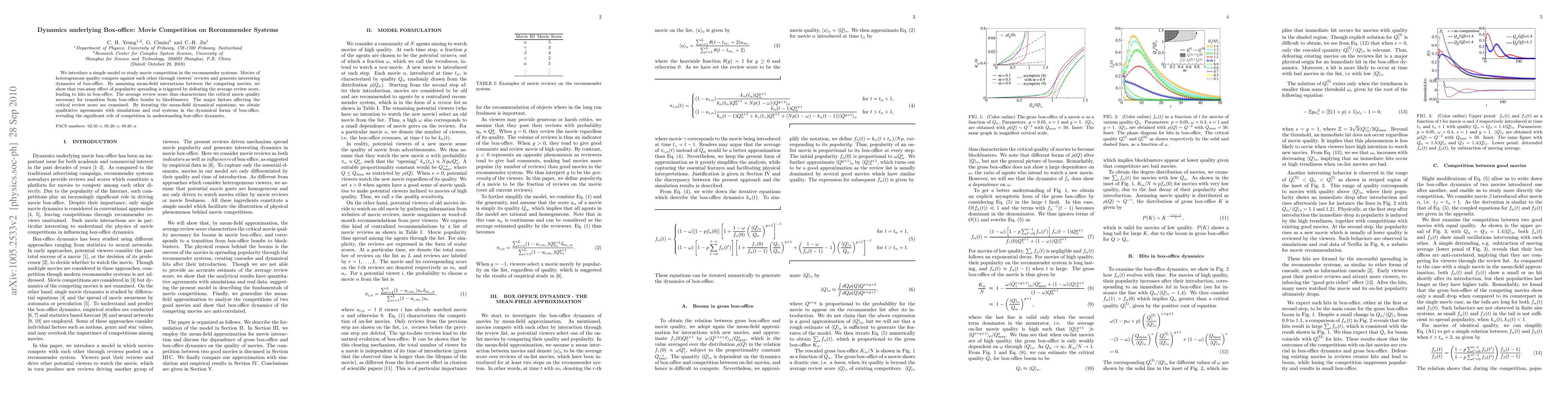 This paper proposes a model to study movie competition within recommender systems, demonstrating that a movie's box-office success hinges on surpassing an average review score, which triggers a popularity run-away effect. The study highlights the critical role of competition among movies in shaping box-office dynamics, supported by qualitative agreements between model predictions and real-world data.
