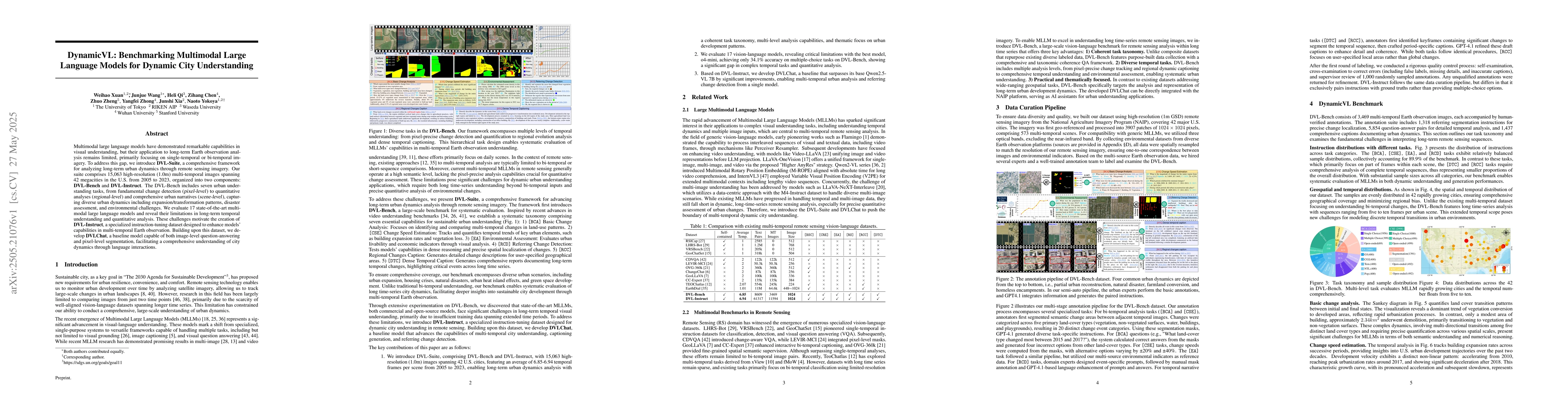 The work differentiates itself by focusing on long-term urban dynamics using high-resolution multi-temporal imagery, and by creating DVL-Instruct, a specialized instruction-tuning dataset to improve model capabilities in Earth observation.