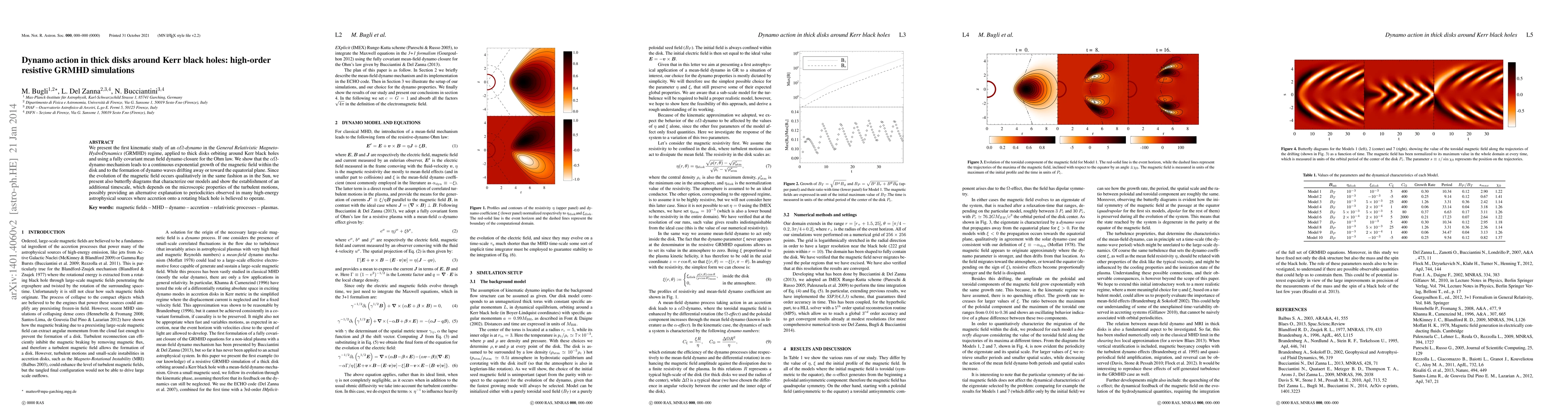 Researchers simulate the growth of magnetic fields in thick disks around Kerr black holes using GRMHD simulations, finding a continuous exponential increase in field strength with dynamo waves that drift toward or away from the equatorial plane.